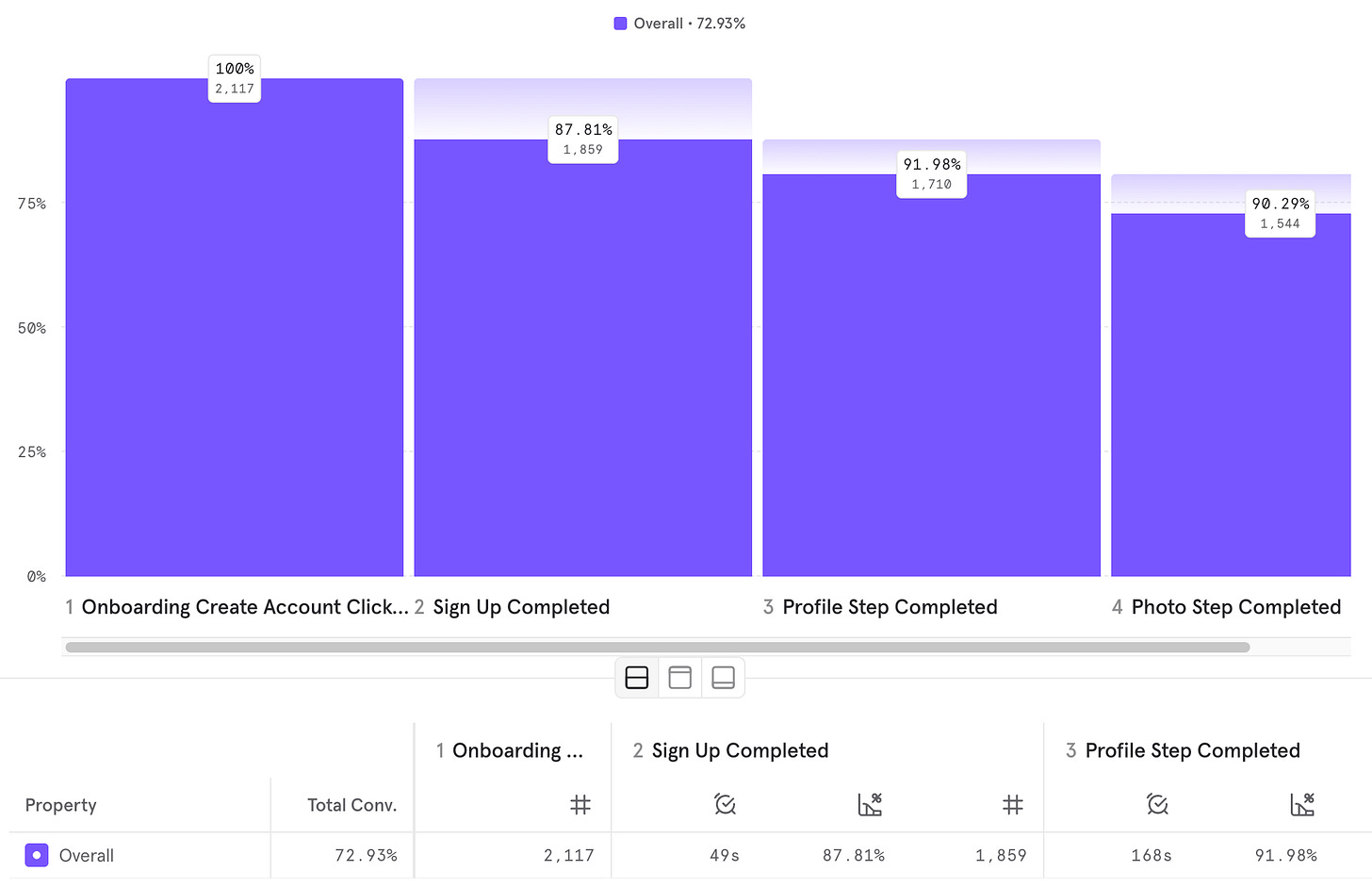 Time to Convert: This is often overlooked. If the gap between Sign Up Completed and Profile Step Completed is 168 seconds, that’s nearly three minutes of friction.