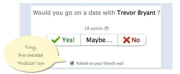 Badoo built a mechanism to exploit this “auto-posting” capability perfectly. They created a quiz app that lived inside Facebook.